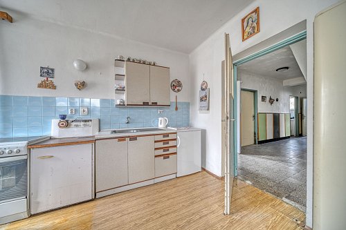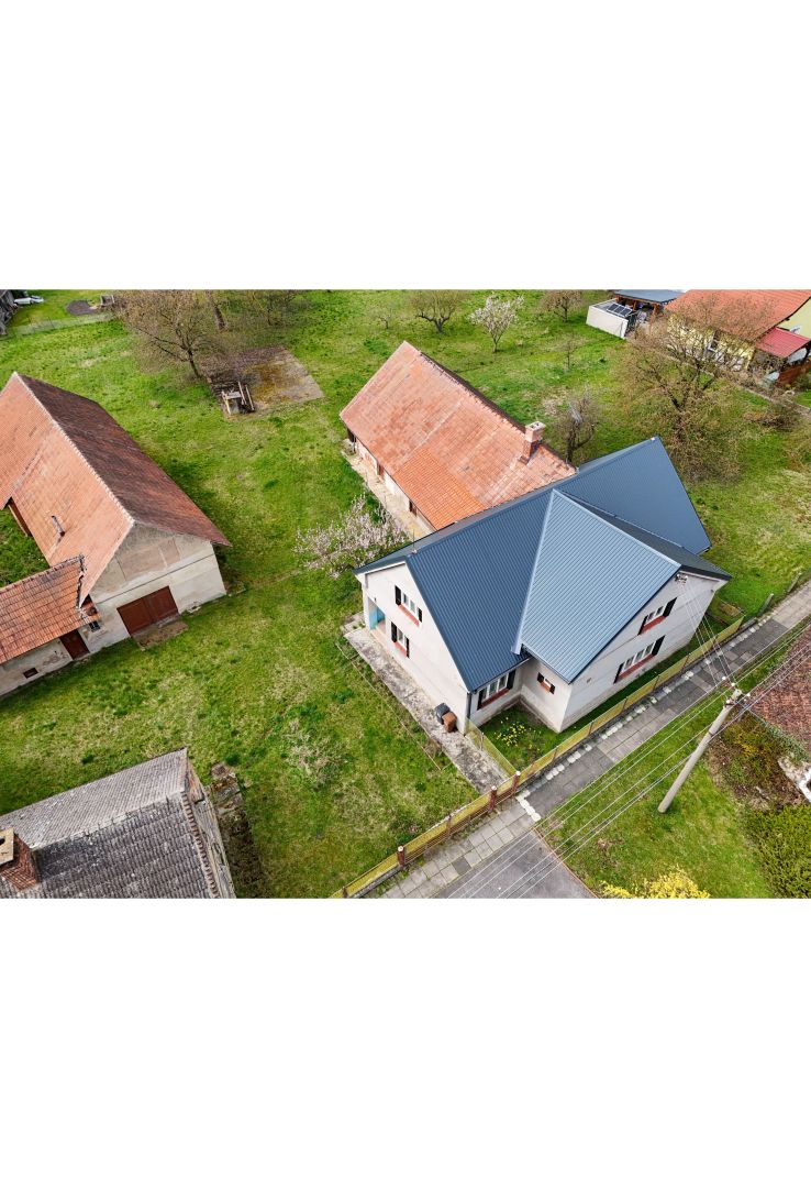 Na obytnou část navazuje starší hospodářská část (sklady apod.).Součástí pozemku je také zděná stodola s garáží a další rodinný dům určený k demolici, což nabízí zajímavý investiční potenciál či možnost další výstavby.