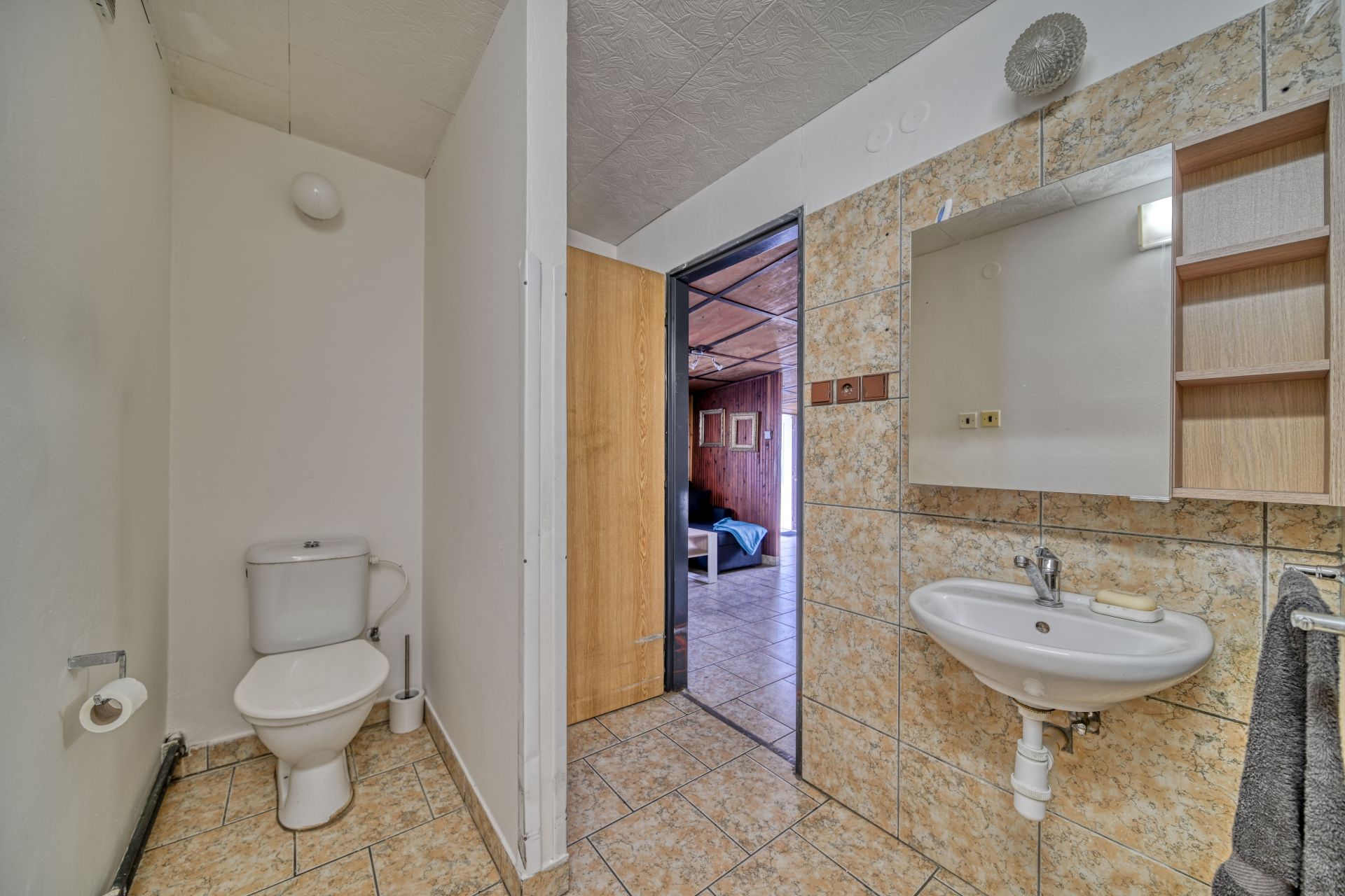 Dům je zděný s plechovou střechou, dřevěnými okny. V přízemí se nachází dva pokoje s kuchyňským koutem a koupelna se sprchovým koutem a WC. Do patra vede dřevěné schodiště, kde jsou další dva samostatné pokoje vhodné pro rodinu či hosty. Podlahy v přízemí jsou řešeny dlažbou, interiér doplňují dřevěné prvky, které navozují útulnou atmosféru. Vytápění zajišťují krbová kamna, ohřev vody je řešen bojlerem. Voda je čerpána z vlastní vrtané studny s užitkovou vodou. Odpad je sveden do septiku. Konstrukce domu je obestavěna tvárnicemi Ytong. Na pozemku se nachází také zděný zahradní domek vhodný pro uskladnění nářadí nebo jako dílna.