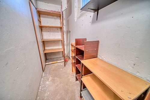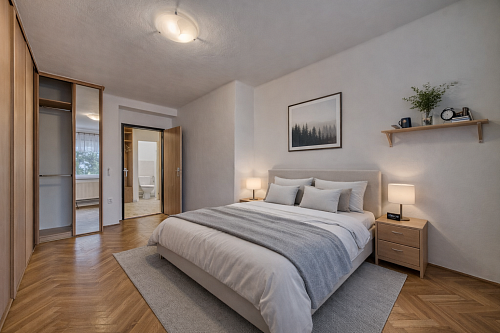 Dispozice bytu nabízí dva prostorné pokoje o velikosti 19,12 m² a 15,84 m², jídelnu s kuchyňským koutem o výměře 14,76 m², koupelnu se sprchovým koutem, samostatné WC a komoru. Součástí bytu je rovněž sklep v suterénu domu.