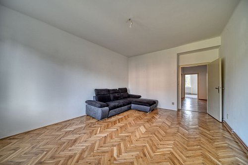 Dispozice bytu zahrnuje prostorný pokoj o velikosti 20,87 m², druhý pokoj s plochou 13,39 m², samostatný kuchyňský kout o rozloze 2,99 m², koupelnu 3,02 m², samostatné WC 1,26 m² a chodbu 5,68 m². Měsíční nájemné činí 12 000 Kč, k tomu se připočítává paušál za služby ve výši 4 000 Kč, který zahrnuje teplo, elektřinu, internet, vodu a kanalizaci. Vratná kauce je stanovena na 18 000 Kč.