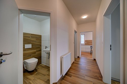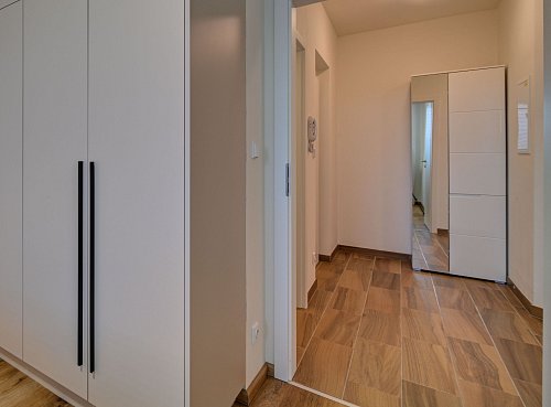 Byt dále nabízí dva samostatné neprůchozí pokoje o výměrách 11,31 m² a 11,46 m², koupelnu, samostatné WC, chodbu a technickou místnost. Samozřejmostí jsou vestavěné skříně, pračka, sušička a další prvky nadstandardního vybavení, které zajišťují maximální komfort bydlení.