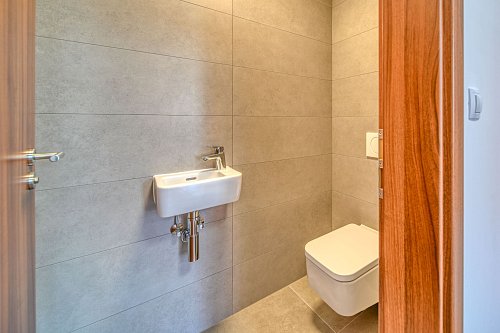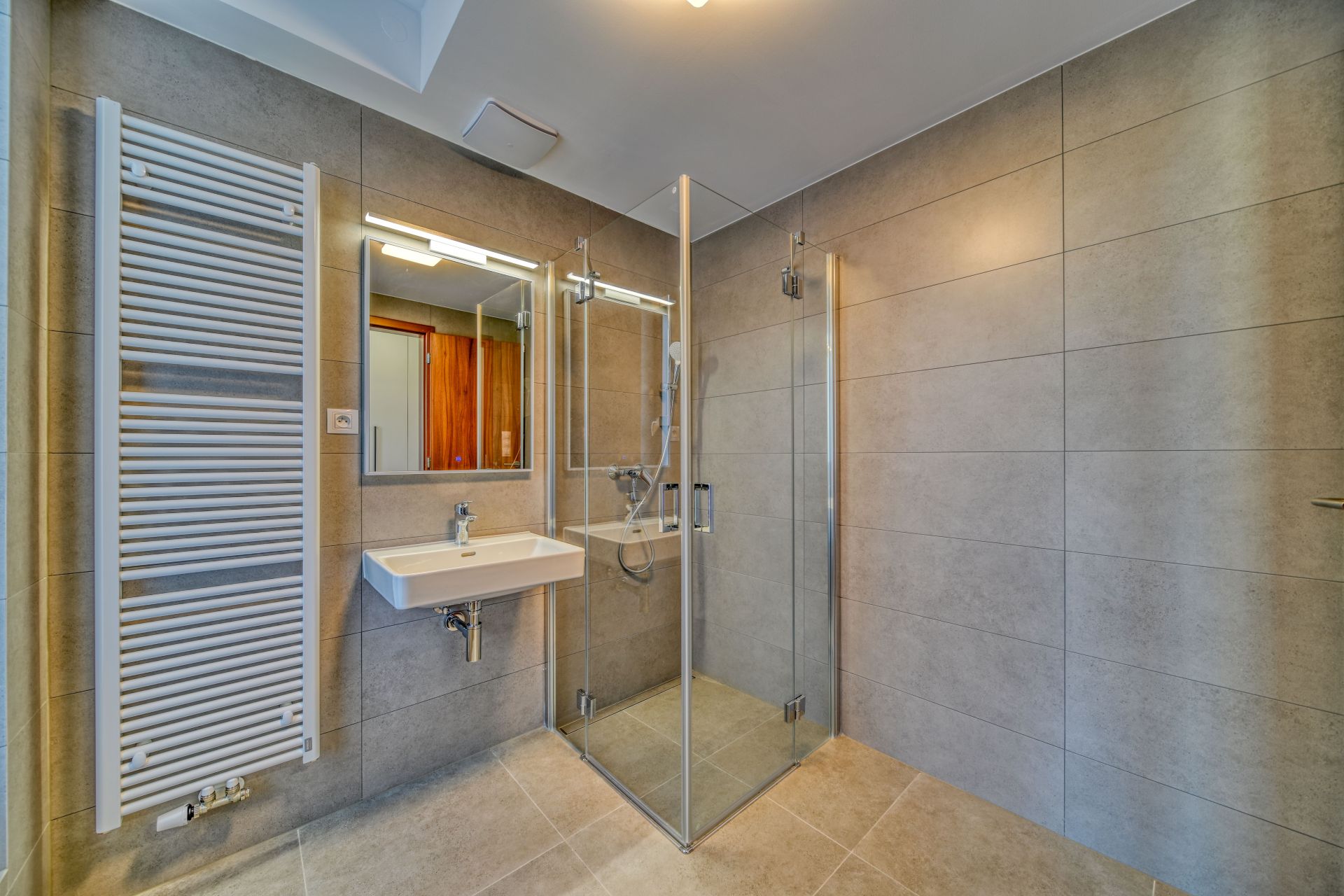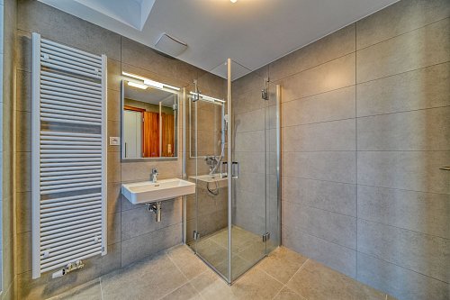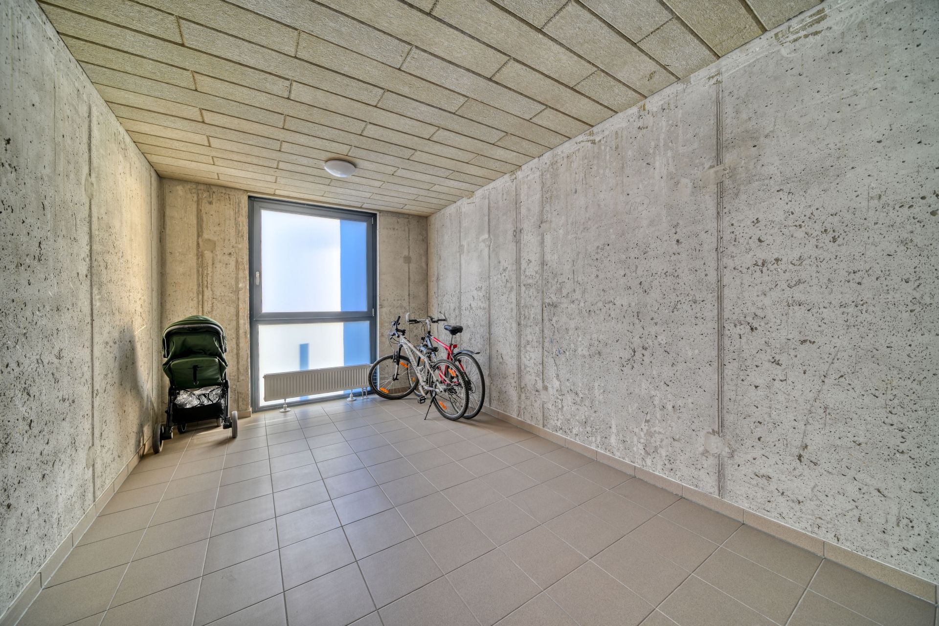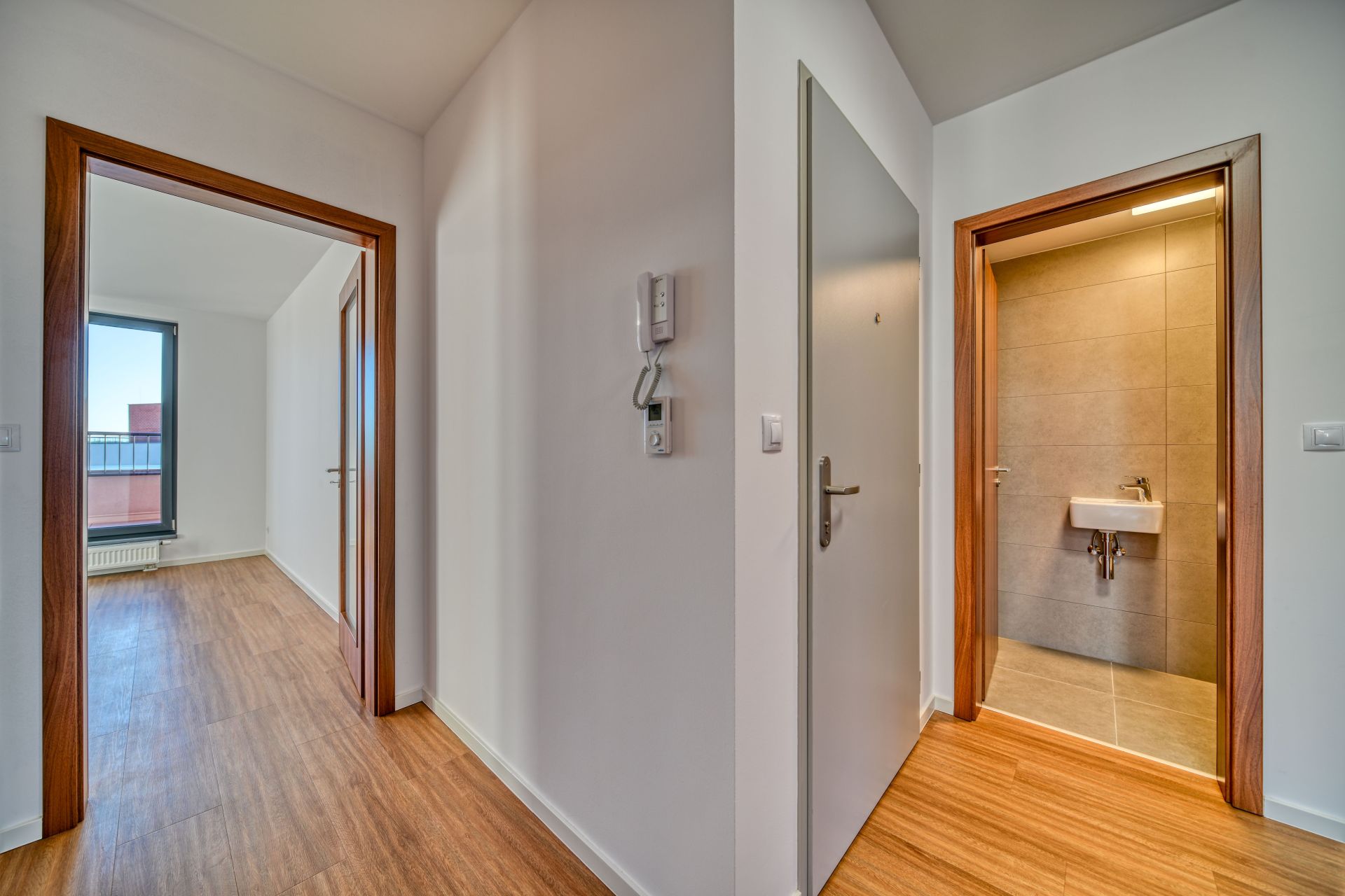 Velkou předností bytu je prostorná terasa o rozloze 42,4 m², ideální pro relaxaci či posezení s přáteli. K bytu dále náleží sklepní kóje a venkovní parkovací stání. V domě je k dispozici výtah i kolárna. Interiér bytu je řešen v moderním stylu – součástí je rohová kuchyňská linka s vestavěnými spotřebiči (varná deska, trouba, mikrovlnná trouba, lednice, myčka, digestoř). V chodbě se nachází vestavěné skříně, které nabízejí dostatek úložného prostoru. Koupelna je vybavena sprchovým koutem, toaleta je samostatná s umyvadlem.
